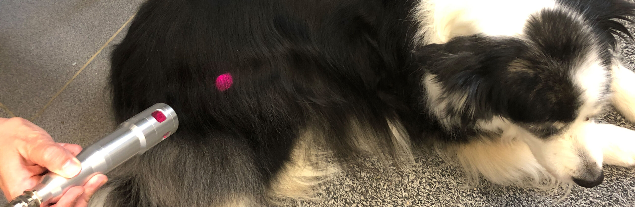 Aaron, unser zweiter Gos, entwickelte sich prima. Er war lebendig, freudig, und nahm stetig zu. Doch so ab dem 5. Monat war seine Hüftpartie deutlich höher gebaut, als die Schulter. Klar, die kleinen Gosis wachsen nie ganz gleichmäßig, doch im Vergleich zu unserem Pablo schien uns dies doch nicht ganz normal. Wir wandten uns an unsere Hundetrainerin und Naturheilerin Sabine Zimmermeister, die uns schon immer viel über gesunde Ernährung und Gesundheit der Hunde erzählen konnte. Zu dieser Zeit hatte Aaron auch Probleme mit dem Zahnwechsel. Sie sah sich unseren Aaron an und schlug eine Lichttherapie vor. Bei dem ersten Termin war er sehr ängstlich und kaum zu beruhigen, da ein unangenehmer Tierarztbesuch vorher stattfand. Zwei Tage nach der Behandlung trauten wir unseren Augen nicht. Aaron stand fast gerade, der Rücken in einer Linie horizontal. Es war, als hätte er sich vorne gestreckt. Nach einigen Tagen hatten wir den Eindruck, als würde er wieder vorne „abtauchen“. Die Behandlung wurde noch dreimal durchgeführt, bis er relativ gleichmäßig hochstand. Das Verhalten von Aaron wurde jedes Mal besser. Da er keine Schmerzen bei der Behandlung verspürte, wurde er immer entspannter und ging zum Schluss sogar freudig in den Behandlungsraum.